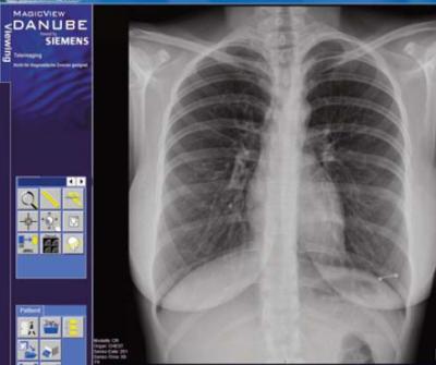 Der gesamte radiologische Arbeitsablauf findet bei uns volldigitalisiert statt. Sämtliche bei uns angefertigten Bilder (Röntgen- und Durchleuchtung, CT, Knochendichte sowie Mammographie und Ultraschall) werdern digital erfasst, bearbeitet, an die Befundkonsole versendet und anschließend in einem elektronischen Bildarchiv gespeichert. Sie stehen dort zum Vergleich für eventuele Kontrollen zur Verfügung.